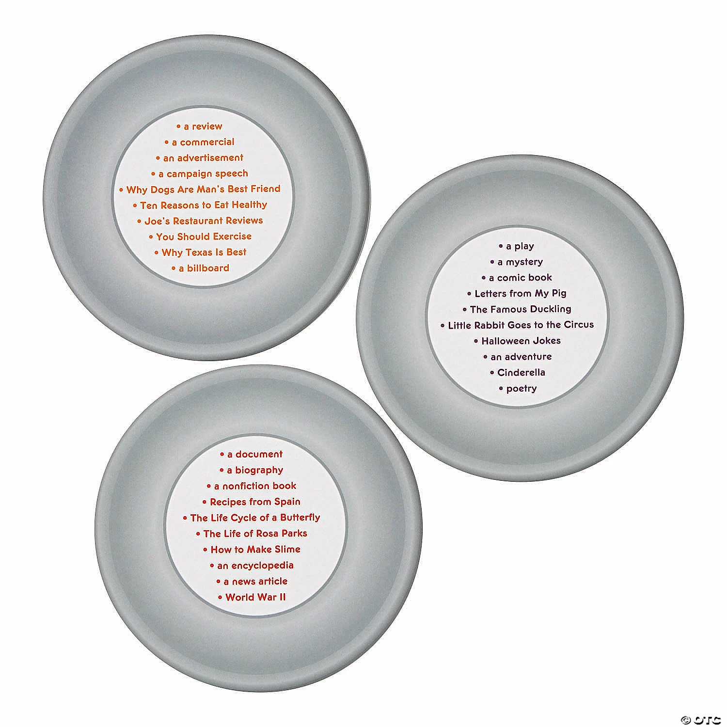 Sort it out! This fun learning game helps students understand whether an author intends to persuade, inform or entertain. A delicious addition to language arts curriculum, this activity includes slices of pie with different types of written materials, ranging from Halloween jokes and plays to comic books and nonfiction books. Students simply need to sort them into the three appropriate categories. Best of all, each pie pan is self-checking with the correct answers on the back! Cardboard. (33 pcs. per unit) Cards, 2 1/4″. Sturdy storage box, 6 3/4″ x 6 3/4″ x 1″. © OTC