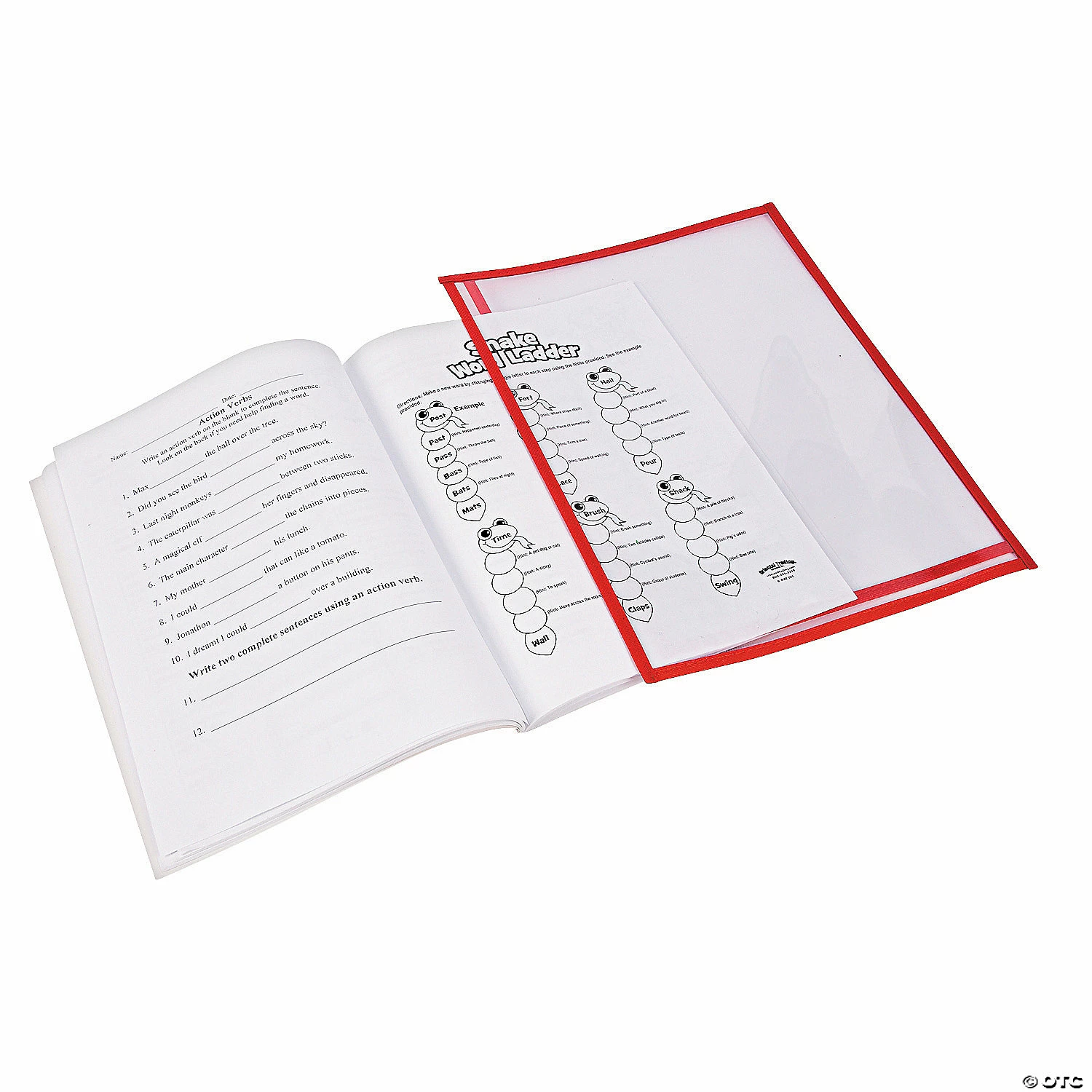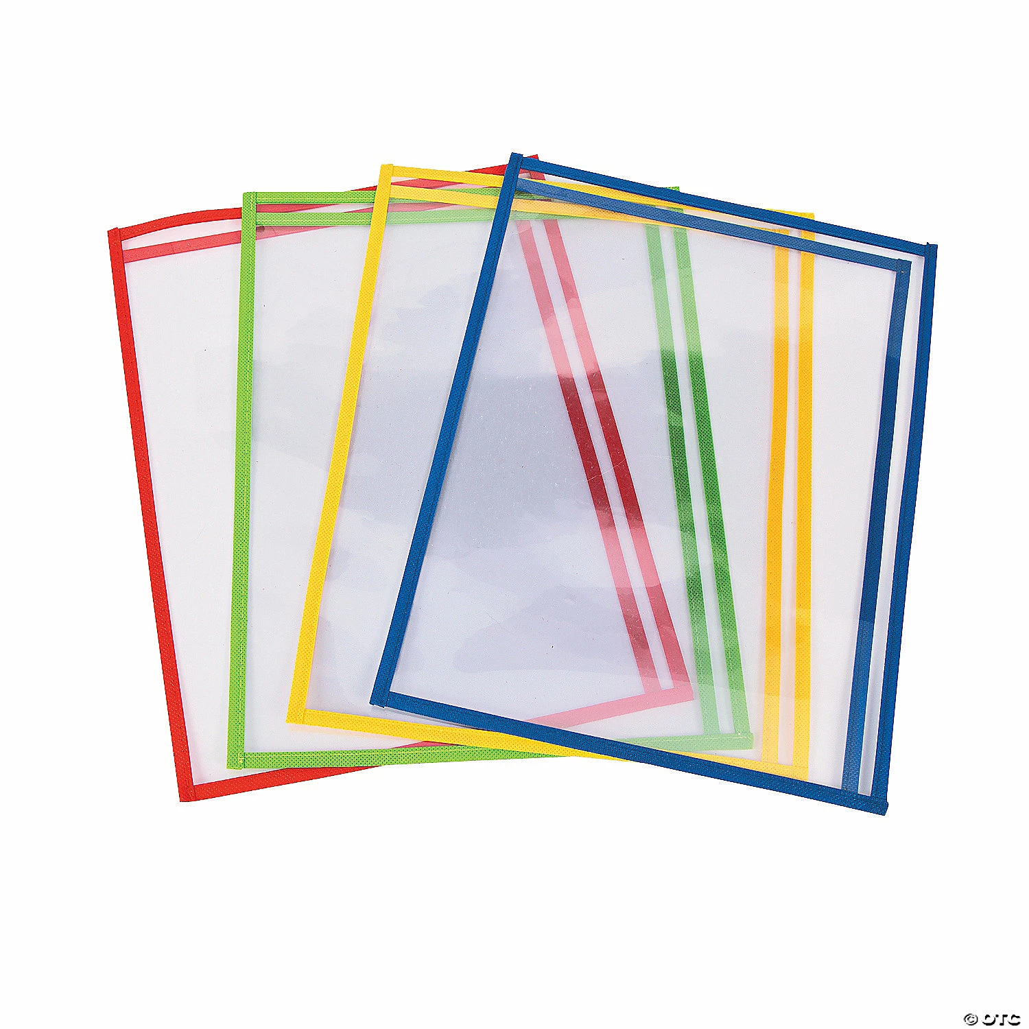 Slide these handy Primary Side-Loading Dry Erase Pockets over a document, magazine or book and write or highlight without damaging your surface. Opens from top and side for easy use. Great for taking notes in the classroom, allowing multiple students to complete a workbook, studying and teaching. These dry erase sleeves include red, yellow, green and blue. Plastic. 10″ x 13″ Β© OTC