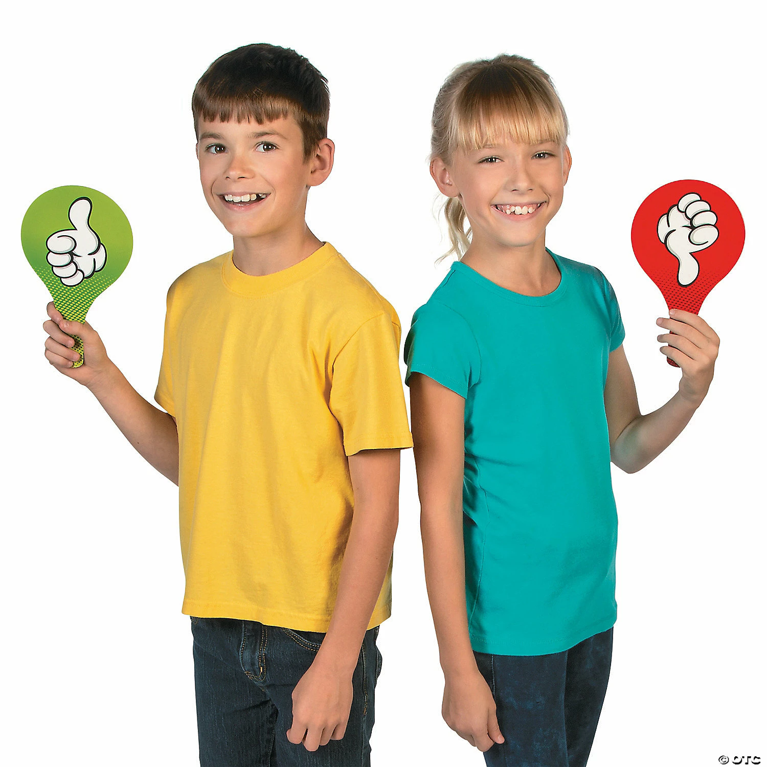 โThese thumbs up/thumbs down paddles are the perfect tool for assessing your students when teaching online. They can be used to check for understanding of true/false questions or to gauge students’ feelings or opinions on a particular topic. The paddles also allow the teacher to visually check to see if students are engaged in video chats, too!โ